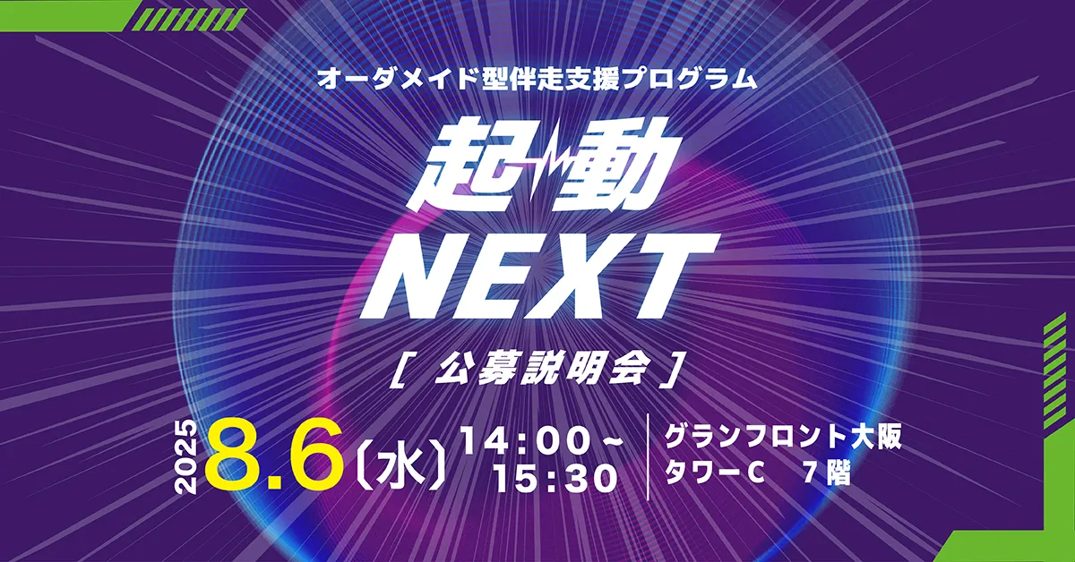 大阪・関西圏におけるイノベーション創出とスタートアップ・エコシステムの構築を強力に推進する公益財団法人大阪産業局。同局が、新たな挑戦者(起業家やイノベーター)を支援するために立ち上げた重要な新規プロジェクトが「起動NEXT」です。