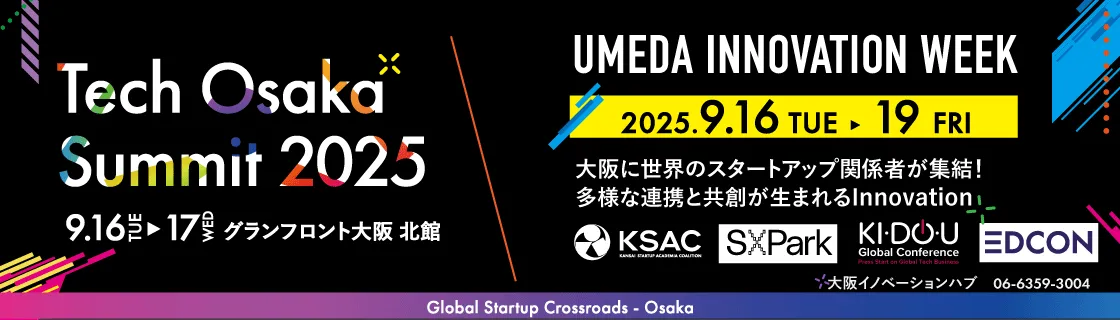 国内外からスタートアップ、投資家、企業が集結する国際的なイノベーションカンファレンス「グローバルスタートアップクロスロード大阪」。その中で、梅田エリアの多様な拠点を横断して同時多発的にプログラムが展開される中心的なイベントが「梅田イノベーションウィーク」です。公益財団法人大阪産業局が主催するこの重要なイベントにおいて、私たちはコミュニケーション戦略の根幹に関わる課題を発見し、イベント体験の価値を最大化するための新たなロゴとキービジュアルを開発しました。単なるデザイン制作に留まらず、物理的な空間(チラシ、会場サイネージ)からデジタル空間(SNS広告、WEBサイト)まで、あらゆる媒体で一貫したブランド体験と効果的な情報発信を可能にする、柔軟で拡張性の高いクリエイティブシステムを構築・実装しました。